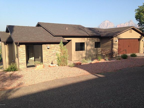 Gorgeous uptown one level home in desirable uptown sedona. Completed in 2016.Red rock views , minutes walk to restaurants,shopping and nightlife.Motherin-law setup. Stainless steel appliances, upscale cabinetry and finishes thru out.Plenty of outdoor living space .Room for expansion and storage under house.Easy maintanance old sedona stylin with tasteful stone exterior accents. Great investment tenant occupied on lease of $2700 monthly owner agent