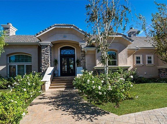 Located within the gated confines of one of the most exclusive developments in the hills of Orange, this custom estate home on a single-loaded 1.4 acre cul-de-sac lot epitomizes the entertainer's ideal with breathtaking views of hills & lights. One of a kind wrought iron & glass front doors open to approx. 5,800 square feet with voluminous ceilings 5BR w/walk-in closets+5.5 bathrooms& direct access to balconies & patios + a handsome office w/fireplace. Gorgeous distressed wood floors, granite,travertine, wainscoting, crown moldings & custom built-ins make every room exceptional. Formal dining room with built-in wine bar has French doors opening to one balcony. Stunning gourmet kitchen with huge center island, granite countertops, Subzero refrigerator, dual ovens & Viking 4-burner stove with gas grill. The Great Room with wall to wall built-ins & fireplace opens to a large covered view balcony. Main floor master suite with fireplace, lavish bathroom with wall fireplace,spa tub, sitting room & walk-in closet. The lower level game room with professional style wet bar,dual refrigerators, has direct access to the yard featuring an infinity pool, spa, fire pit+ BBQ Oversize 4-car garage with extensive built-ins & epoxy flooring complete this home.