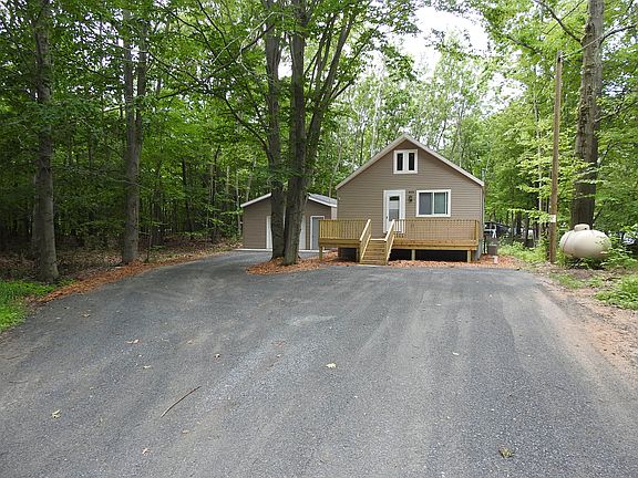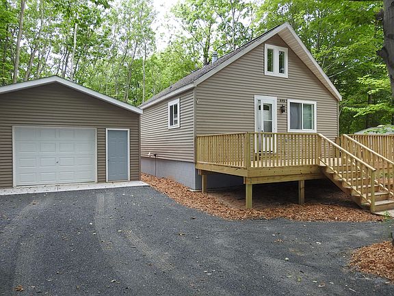 Charming move in ready Cottage in Silver Lake. All newly remodeled with tiled bath and shower attached to main floor bed and living room. Large second level bedroom with room for several beds, ample sleeping area. Open Kitchen concept with beautiful cabinets & space for dining table. Decks on both front and back of house with Wooded private setting. New 2 stall garage added to hold all your toys, dune or water! Close to public boat launch and minutes to Lighthouse and public Lake Michigan beach!