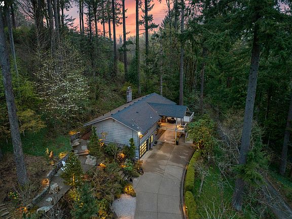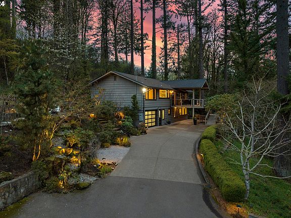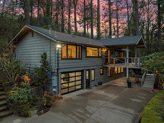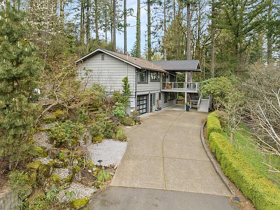 Amazing NW serene retreat nestled on a .64 acre lot surrounded by a lush wooded landscape. This meticulously maintained home exudes character and warmth with extensive and thoughtful updates throughout and charming mid-century features including a Saul Zaik designed covered deck. The main level boasts hardwood floors, a fireplace, and built-ins. Abundant windows offer scenic views, creating a tranquil ambiance. The well-equipped kitchen features an island, pantry, stainless steel appliances, and granite counters. The primary suite on the main floor offers views and includes a custom-built walk-in closet. The freshly remodeled bathroom showcases designer tile, dual sinks, and a walk-in shower with custom glass enclosure. The spacious lower level includes a third bedroom with a fireplace and ample storage, ideal for a separate living space, mother in law suite, a potential ADU, or bonus space. Huge storage room and a well appointed garage offers tons of storage or options for additional rooms/future expansion. Outside, the expansive lot offers a private retreat, with mature trees providing shade and privacy. The deck and patio with views, ample parking, and professionally landscaped yard with irrigation and lighting complete the outdoor oasis. Located in a quiet community yet close to NW Portland's many amenities and top rated schools. Be sure to check out the lower taxes! A truly exceptional opportunity!