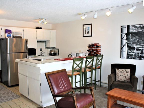 This sunny top floor condo has views of Schweitzer Mountain Resort and the Village area. You can even see lake Pend Oreille if you step out onto the balcony. The condo is fully furnished and tastefully decorated with easy ski access. The kitchen and living area are open and a private alcove for the bed with a wood-burning fireplace to keep you cozy. The condo has a great common recreation room with a TV and pool table, private ski lockers, laundry facilities and a cedar sauna. Plus, a private parking lot. Located just a short distance to the village and an easy five-minute walk to the Overnighter ski trail, this is Schweitzer living at its best.