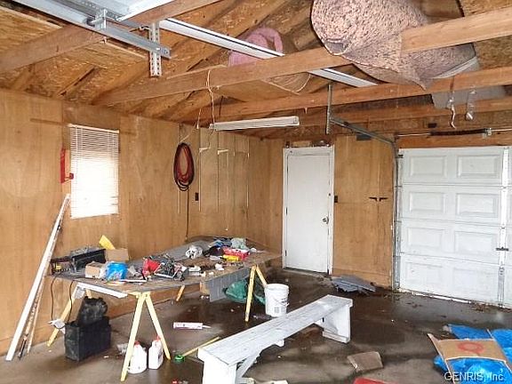 Why pay for mini storage!!! Rare find lot with existing garage on it,if its not big enough for you,, add on to it. There is a nice stone base driveway,the place is wired for electric. Shop has concrete floors and front and back 8' overhead doors.