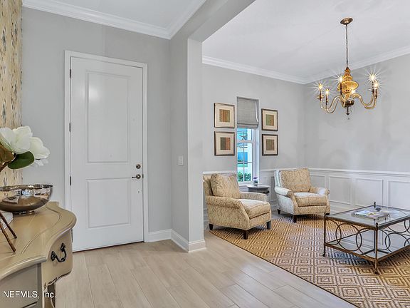 Welcome to this Coastal Oaks Home in the premier gated Nocatee community located near a cul-de-sac. Embrace the Warm gray & white neutral tones thru-out. Enjoy the gourmet kitchen w/high end cabinetry, quartz counters, large island & gas cooktop. Glide thru triple sliders to the expanded screened lanai & backyard oasis w/summer kitchen for outdoor entertaining or peaceful relaxation on the nature preserve. 1st floor Owners suite and luxurious bath w/separate vanities, quartz counters & walk-in shower. Upstairs boasts spacious Loft, 3 beds/2 bath including En-suite with balcony, + walk in storage closet. 2+ car garage gives extra room for golf cart. Also Office/Flex or Dining Room. Exclusive amenities of CO include Guard Gate, 2 Pools, Fitness Center, Clubhouse, Playground & Sport courts!