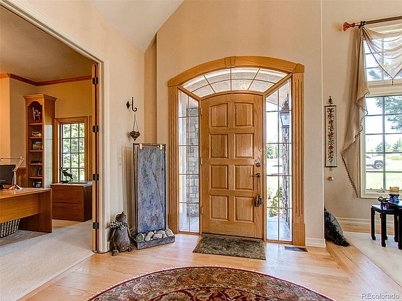 Sprawling Estate in Premier - Diamond Ridge Estates neighborhood on 1.6 acres! Enjoy this lovely gently sloped lot with views of the mountains. One of the larger floor plans in the neighborhood. Beautiful circular driveway. The home also features an invisible fence for the family pet. Step inside and enjoy 2 main floor office spaces lined with gorgeous built-in shelves & custom wainscoting on walls. Enjoy REAL wood floors throughout most of main level. Front office overlooks lovely front area professionally landscaped. Walk through to formal living room with charming fire place and vaulted ceilings. This room then opens to formal dining room featuring French doors to the side yard with custom stamped patio. Step into the kitchen and enjoy plenty of sunlight & stainless steel appliances (new dishwasher & micro). Huge pantry and convenient desk in kitchen too. Many shutters throughout home. Upstairs you can enjoy spacious bedrooms with views from Longs Peak to Pikes Peak. Master bedroom features vaulted ceilings and lovely fireplace. Master bath has jetted tub and spacious walk in closet. Basement is unfinished and ready for your custom touch! Serenity awaits in this lovely family home!