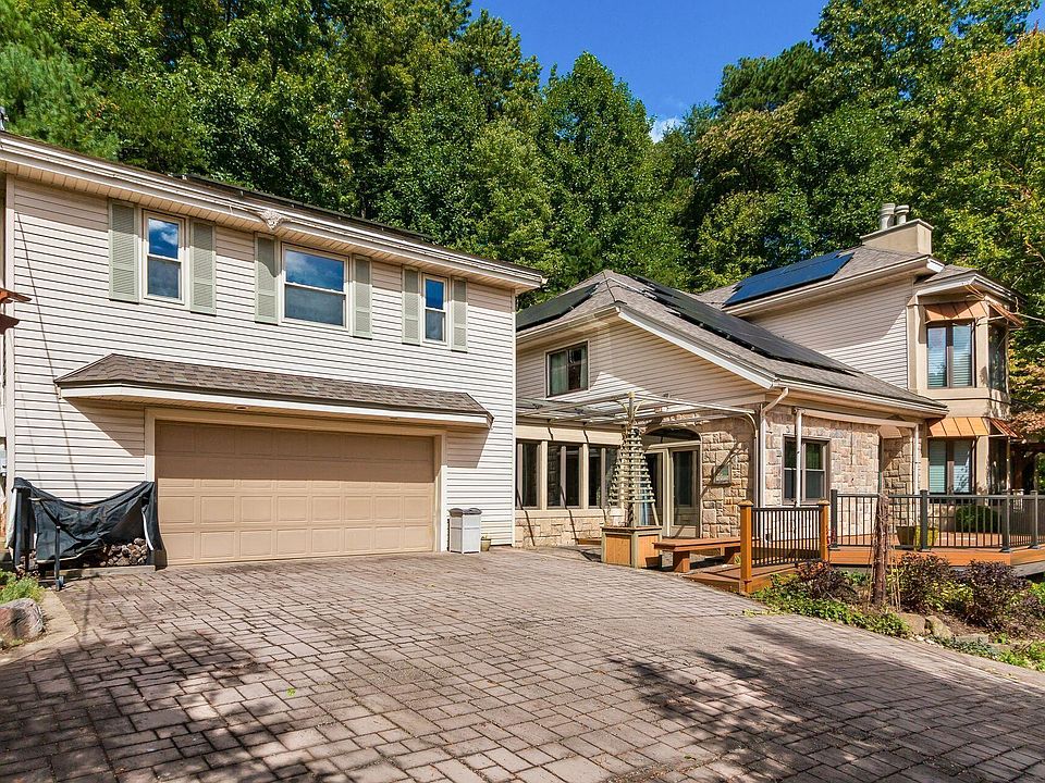 Amazing and Unique one owner , custom built home situated on three lots in secluded and beautiful Pine Lake Estates. A must see to appreciate all the features this home has to offer. Hardwood trim and built-ins throughout include quarter sawn oak, hickory, maple, walnut and purpleheart. Huge kitchen with abundant cabinetry, Corrian countertops and tile backsplash. First floor master suite with fireplace, walk-in closet, master bath and sliding doors to access the composite deck and hot tub. Home is constructed with the extremely strong, insulated Smartblock foundation, coupled with Radiant in-floor heating and Solar panels make utility bills minimal.. Features include a four seasons room, workshop above garage ,composite deck w/awning, leaded and stained glass lighting/ windows. Must See
