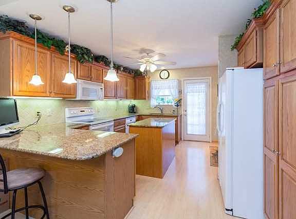 One of 2 walkout homes in the Carriage Homes Town Home development. This is a very well maintained home with many upgrades including granite kitchen counter tops and a moveable center Island with granite. The main level is open and features an expanded kitchen area and deck overlooking the pond. There is almost 2000 square feet of finished living space. The walkout lower level has a 3rd bedroom, family room with gas fireplace, and 3/4 bath. The covered patio with great view of the pond is just outside the door. The extra large 2 car garage has built in cabinetry with lots of storage.