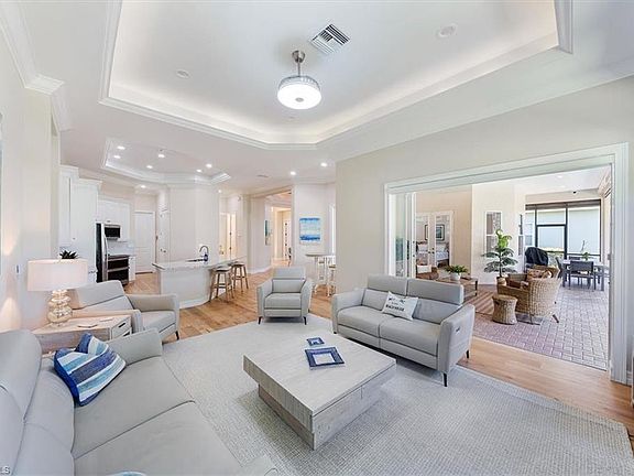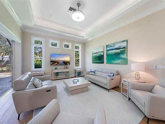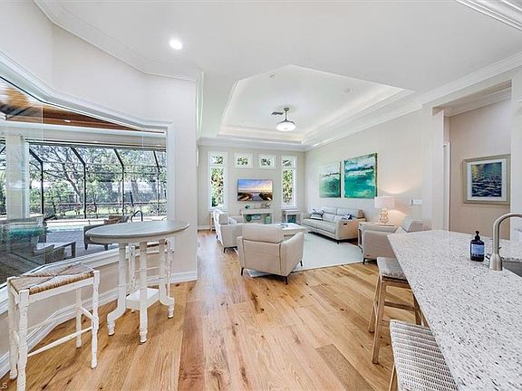 H8760-Impressive, bright, open, and newly updated resort style 3 bed/2.5 bath home in Horse Creek Estates. Total interior and exterior paint/landscaping. The 12-foot ceilings, 8-foot doorways, hardwood flooring throughout, 5.25” baseboards, 8” crown moldings, GE Profile appliances, closet systems, plantation shutters, remote shades, remote-controlled fans/lights, and Dolphin pool system, with the ability to control pool setting through your phone, all make this a Fabulous Florida Home. New motorized impact resistant (hurricane) Lanai screens and impact doors and windows. New remote control window shades and window treatments throughout. Many extras and the home is in pristine condition. Also has a large den/leisure room. Home is located across from La Playa Golf Club and multi-acre preserve, located in a Highly Rated School System. Backyard boasts serene mature landscaping with a tranquil, lazy canal makes this a good fit for all, and is private and with a new fence. This location perfectly located near shopping, restaurants, beaches, and the major areas of Naples, Bonita, and Fort Myers airport are easy for this location. Some furnishings negotiable.