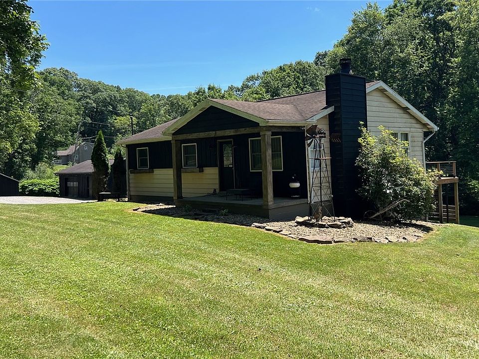 Welcome to this stunning 60-acre property, a true hunter's paradise with abundant wildlife and lush grazing pastures. The 3 Bedroom Ranch has been completely remodeled with warm, farmhouse decor and walls boasting Joanna Gaines Magnolia Home paint. The open concept floorplan features the kitchen with granite countertops, a tumbled marble backsplash, and an eat-at counter. The sliding glass door in the dining area opens to serene views from the deck, perfect for entertaining. Gather wood on your property for the cozy stone fireplace, a focal point in the living room. The 1 1/2 baths are adorned with stone walls, shiplap, and granite counters, with antique claw foot tub with shower surround in the main bath. The 6-stall stable and the 50-foot round corral are ready for your horses. The small animal barn and adjoining lush pasture and chicken coop add a touch of farm life. This exceptional property combines modern updates with rustic charm, offering a perfect peaceful country lifestyle.