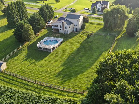 Situated just minutes from the MD/PA line, this light-filled beautifully maintained home offers the perfect blend of comfort, space, and scenic charm! Nestled on a fenced 1.15-acre parcel surrounded by pastoral views, the property invites you to enjoy peaceful, private living with 360-degree views. Inside, gleaming hardwood floors flow from the foyer through the dining area and into the expansive great room featuring a vaulted ceiling, cozy wood stove, and sliding doors leading to a spacious covered deck -- ideal for indoor-outdoor entertaining! The updated kitchen boasts stainless steel appliances, abundant counter space, and a convenient dry bar complete with wine chiller - perfect for everyday living or hosting guests! The main level primary suite provides ease and privacy, while 3 additional bedrooms upstairs accommodate family or guests. Downstairs, the finished walk-out basement expands your living space with a large rec room, game room, den, potential 5th bedroom, and full bath! Outdoors, relax on the covered porch or unwind by (or in!) the pool, and enjoy the panoramic country views! This home offers the best of both worlds - serene country living with easy access to commuter routes, amenities, and the charm of nearby towns. A must-see property that truly feels like home!