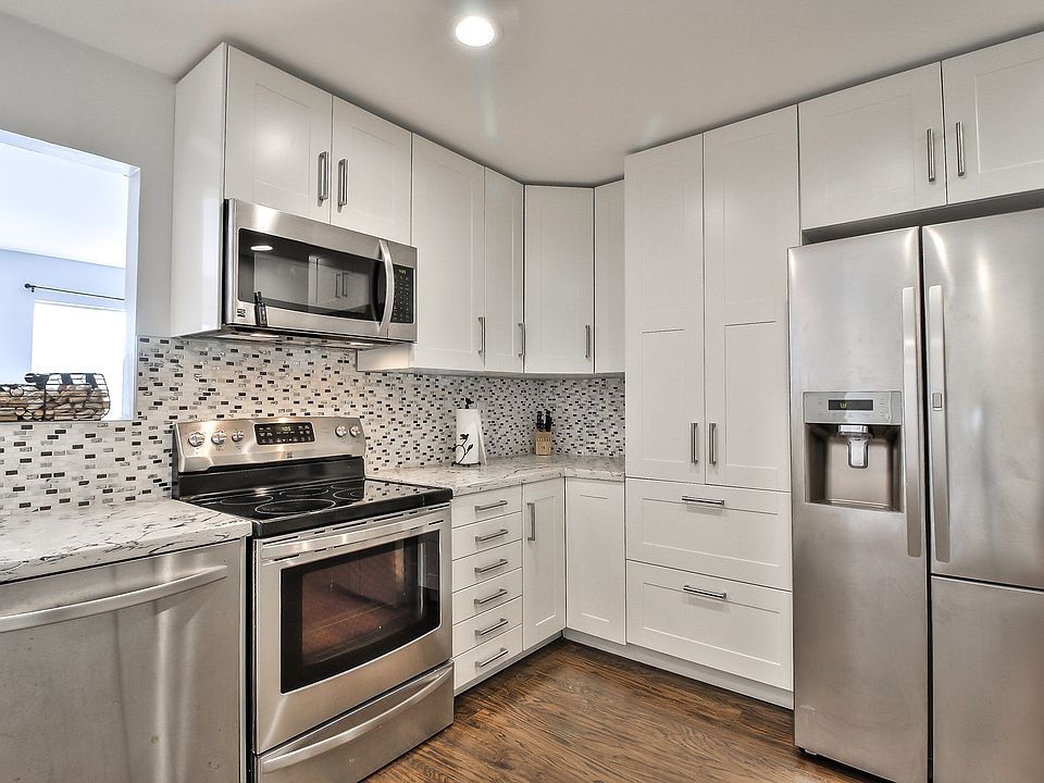 - KITCHEN FEATURES: Dishwasher, Electric Range/Cooktop, Garbage Disposal, Microwave, Counter - Solid Surface, Refrigerator, Updated Kitchen
