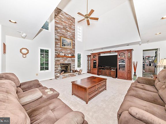Finished lower levelDramatic two-story foyerStriking stone fireplaceSoaring ceilingsMultiple closetsNew roofNew carpet