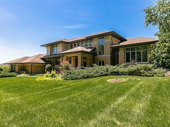 PERFECTION!! Inspired by Frank Lloyd Wright and built by Buresh Construction, this home offers the ultimate in custom detailing. Located in Woodland Estates and situated on a 2.03 acre park-like setting, this incredible home welcomes you with a stone floor entry, a spacious great room with teak floors, a wall of mahogany built-in's, including a retractable tv, an oversized stone fireplace, lots of of clean-lined custom Millwork and soffit detailing. If the entry, great room and dining room are not enough to WOW you, wait until you step into the kitchen. The spacious Chef’s kitchen is a wonderful combination of warm woods and stone, yet space for the whole family to gather! You will love the high-end appliances, abundance of cabinets, wet bar with beverage fridge, huge walk-in pantry, spacious dining area and sitting area…all surrounded by windows and a view of the rear patio and pond! This 5 bedroom home includes 5 full baths and 2 powder rooms, main floor master suite with access to a private patio with hot tub, main floor office, the best laundry room ever and the list goes on and on. The lower level includes a spacious family room with a theater area, a game table are, full bar and a temperature controlled, walk-in wine cellar. You must see this home to appreciate the planning, quality and expense that went into building it.