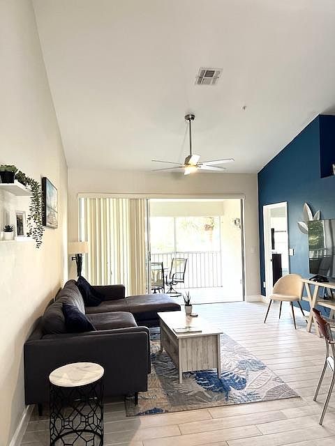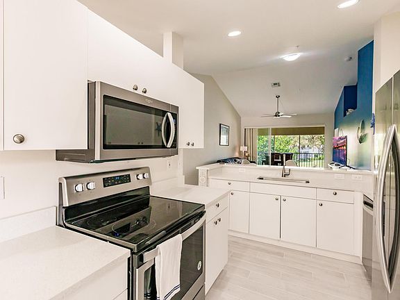 NEW! EXPERIENCE NAPLES IN STYLE AND IN GREAT LOCATION! Unit 203. Enter into a foyer and go up the stairs into a spacious, open concept living area with tall, vaulted ceilings and wall to wall sliding doors that fully open. Enjoy a beautiful view of the lake and fountain from the living area and master bedroom. The master has a king size bed, very large walk-in closet and 2 sink vanity and the 2nd bedroom has a queen size bed with a full bath located right next to it. You will be 3 minutes away walking distance from famous Seed To Table, an organic and fresh market that can be enjoyed day and night with daily live bands, multiple restaurants on two floors that serve all different types of food, as well as an ice cream stand, bakery, wine bar and much more (Please call for faster response) You will also be walking distance to Dunkin Donuts and within one mile away from Publix, Walmart, and for the kids: a mile away from a big waterslide and soccer park. Bonita Springs also close by! The complex has one small pool and one large clubhouse pool, gym, social room, library, tennis courts, bocci courts, a playground and walkways. Small dog allowed. Area is very peaceful, especially since the townhouse sits on a cul-de-sac. IF YOU DON''T HEAR BACK W/IN 1 DAY PLEASE CALL FOR FASTER RESPONSE. This property will be available for a 6 month minimum to 1 year rental as of August 31, 2024. $2800/month. No smoking, parties, or loud music allowed. One small dog is allowed. The main renter needs to be at least 25 years old. First and last month as well as half month security fee will be due at signing.