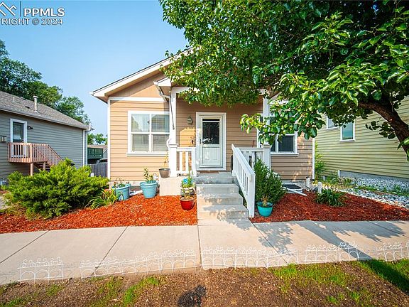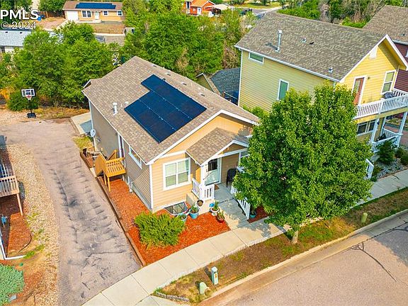 Are you looking for the perfect ranch-style home in southern Colorado Springs, complete with a finished walkout basement? YOU FOUND IT! This spacious and inviting residence offers endless possibilities for you and your family. Upon entering the main level, you'll immediately notice the open and airy layout, featuring a kitchen, living, and dining area adorned with beautiful hardwood flooring. The kitchen boasts stainless steel appliances, granite countertops, and an included refrigerator. Conveniently located off the main area is a laundry room, complete with a washer and dryer. Uniquely in this community, this home also has A/C! The main level also includes a secondary bedroom, a bathroom, and a master suite with an attached ensuite bathroom. Descending to the finished walkout basement, you'll find two additional bedrooms, a full bathroom, and a spacious living room. This area offers so many options, from great secondary living to conversion into an Airbnb or guest suite. Additionally, the included paid-off solar panels significantly reduce the electric bill to nearly nothing, offering substantial savings. Out back you will also find a detached two-car garage. The property is situated at the back of the community, providing added privacy. You can also enjoy the large community park equipped with a basketball court and jungle gym. The home is also conveniently located near the airport. Don't miss the opportunity to make this beautiful home yours!