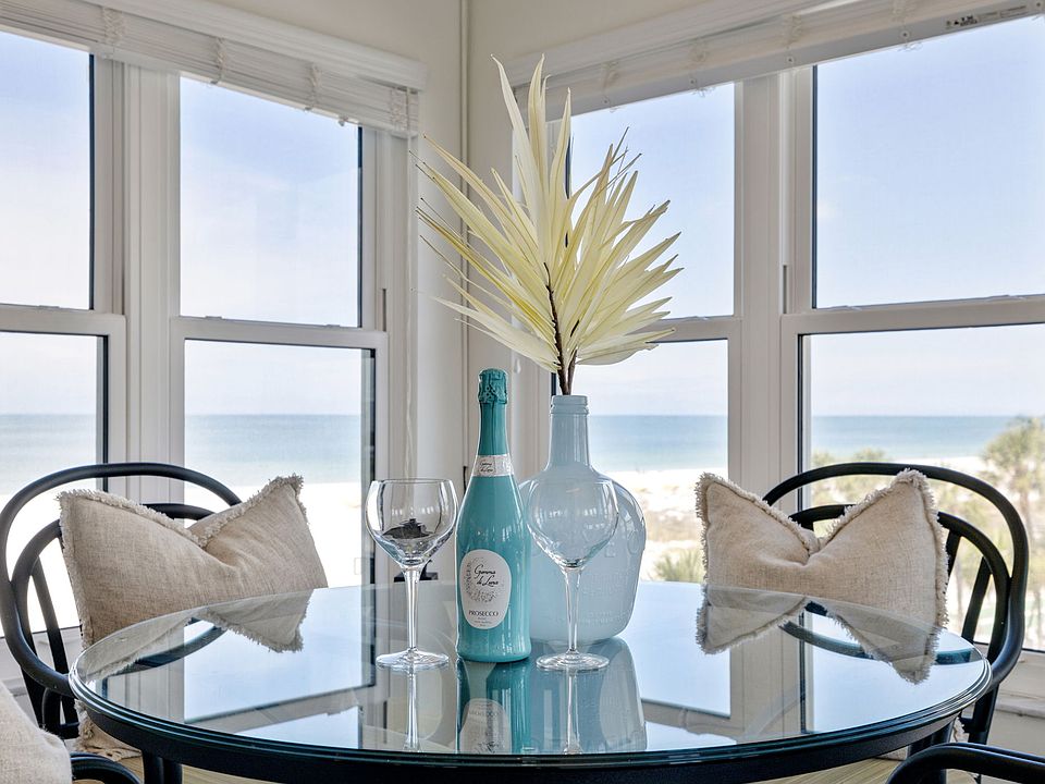 WELCOME TO YOUR FULLY-FURNISHED BEACHFRONT OASIS! AVAILABLE December 1st, 2024 FOR ANNUAL OR SEASONAL LEASE. $4,000/Month annual. $5500/month in season December-May. Nestled in the heart of a picturesque coastal paradise, this exquisite CORNER UNIT 2-bedroom, 2-bathroom condo offers unparalleled beauty and luxurious living with VIEWS OF BOTH THE BEACH AND INTER-COASTAL! Situated right on the beach, prepare to indulge in breathtaking SUNSET VIEWS and soak up the ever-present calming ambiance of the ocean. Step inside this tastefully updated condo and be instantly captivated by its modern charm and coastal feel. The spacious living area boasts large new PGT windows that frame the stunning beach, allowing natural light to flood the space and create an inviting atmosphere. The engineered wood floors add a touch of warmth and elegance. The fully renovated kitchen is a chef's delight, equipped with state-of-the-art Cafe appliances, sleek countertops, and ample storage space. Both bedrooms offer comfortable sanctuaries for rest and relaxation. In the primary bedroom, wake up to a beautiful view down the beach. The second bedroom with an en-suite bathroom is well-appointed and offers privacy and comfort for guests or family members. Beau Monde condo goes above and beyond, providing a host of amenities that will enhance your beachfront lifestyle. An assigned covered parking space ensures hassle-free arrival and departure. Challenge friends to a tennis match on the well-maintained courts, or take a refreshing dip in the HEATED POOL, surrounded by lush tropical landscaping. The beautiful courtyard area with a soothing fountain offers a tranquil spot for relaxation and contemplation. For outdoor gatherings and barbecues, a GRILL AREA is at your disposal, perfect for entertaining friends and family while enjoying the ocean breeze. Stay fit and active in the ON-SITE GYM, equipped with modern exercise equipment, or unwind in the SAUNA after a long day of beachfront bliss. Best of all, the beach is right in your backyard, inviting you to take leisurely strolls along the shore, bask in the sun, or dip your toes in the blue, warm waters of award winning St. Pete Beach. Immerse yourself in the beachfront lifestyle and create unforgettable memories in this coastal haven. Application fees are $150 per adult. HOA approval required before move-in. Rent includes one covered parking space, water, sewer, trash removal, internet, basic cable, exterior maintenance and condo amenities. No pets per the association guidelines. 13% tax applied to leases less than 6 months. 1st, Last and Security Deposit due upon signing. HOA application required. Tenant is responsible for electric. Water, Sewer, Trash, Internet and Cable included in rent.