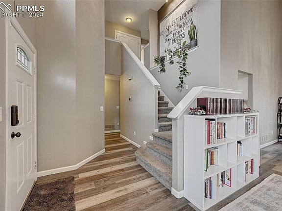 Welcome home to this beautifully maintained 4 bedroom, 4 bathroom home in the heart of the desirable Stetson Hills neighborhood. This spacious home has over 2700 square feet of living space, an oversized 3-car garage, and multiple outdoor living spaces. Brand new LVP flooring throughout the main level! This home has been thoughtfully designed and laid out for comfort and modern living. When you enter the home, you’ll be greeted by an expansive vaulted ceiling in the entryway that leads to a sitting room and dining room with large windows that let in loads of natural light. Beyond the dining room is the kitchen with granite countertops, stainless steel appliances and a quaint breakfast nook. Near the kitchen is the family room with a gas fireplace as the centerpiece of the room. The main level is finished out with a powder room, laundry room and deck access off the living room. Upstairs there are two generous sized bedrooms and a full bathroom. Down the hallway is the spacious primary bedroom with vaulted ceiling and attached 5-piece bathroom. The basement is fully finished with a large living room, office, 4th bedroom, full bathroom and storage space. The walk-out basement leads to a covered patio area and gas firepit area perfect for enjoying a cozy night in or entertaining. Fully landscaped front and back with mature trees and plants. Close commute to Petersons SFB, Schriever SFB, The Air Force Academy and downtown Colorado Springs. Walking distance to schools and a close drive to shopping, entertainment and other amenities.