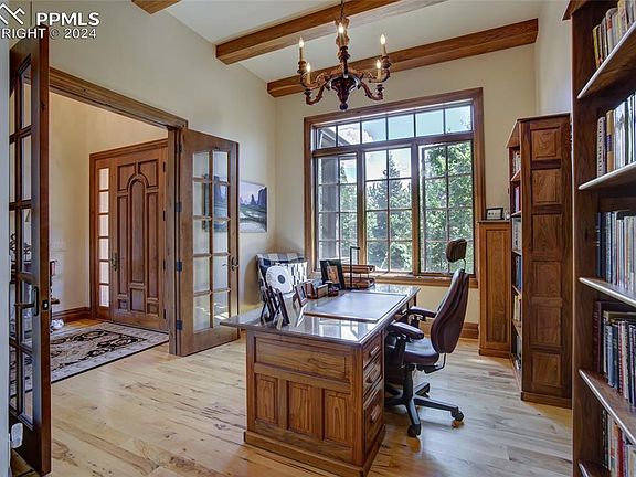 Among the majestic Colorado pines in the desired Broadmoor Resort Community is a spectacular home inside and out. Nestled on a storybook street with amazing curb appeal, this residence offers not only a luxurious living experience but also a connection to nature, with its tranquil surroundings. The extensive landscaping encompasses mature trees, garden beds, & fishponds that frame your own private park! Step inside to explore the layout that tastefully combines impeccable craftsmanship, dramatic vaulted ceilings, remarkable lighting, oversized windows that frame serene views, 7 gleaming hardwood floors throughout. The great room opens to the formal dining area creating the ideal places for entertaining. The gourmet kitchen is perfect with custom cabinetry, ample prep space, deluxe appliances, granite island with seating, & eat-in area with access to the deck that looks out onto the pines beyond giving you peaceful privacy. Retire to the main level primary suite or pamper yourself in the 5-piece ensuite that treats you to a soaking tub, spa-like shower, & walk-in closet. A formal living area boasts a grand fireplace, custom half bath, office & laundry room completes the main level. The lower level is a space for hosting, & overall boasting-this space is for big-time entertaining featuring a wet bar, great room, workout area and walkout to the patio. Down the hall, are 2 additional bedrooms and a full guest bath. The boasting doesn’t stop there...upstairs you will find the epitome of a mother-in-law suites. This unbelievable, suite has spectacular views of Colorado Springs that are so picturesque it will leave you speechless. It also features vaulted ceilings, tons of natural lighting, kitchenette, & bath making it the perfect retreat to stay. Two additional bedrooms both boasting ensuite baths provide comfort for family or guests. This one of kind residence is truly a masterpiece that offers a once in a lifetime opportunity to redefine Colorado living at its finest.
