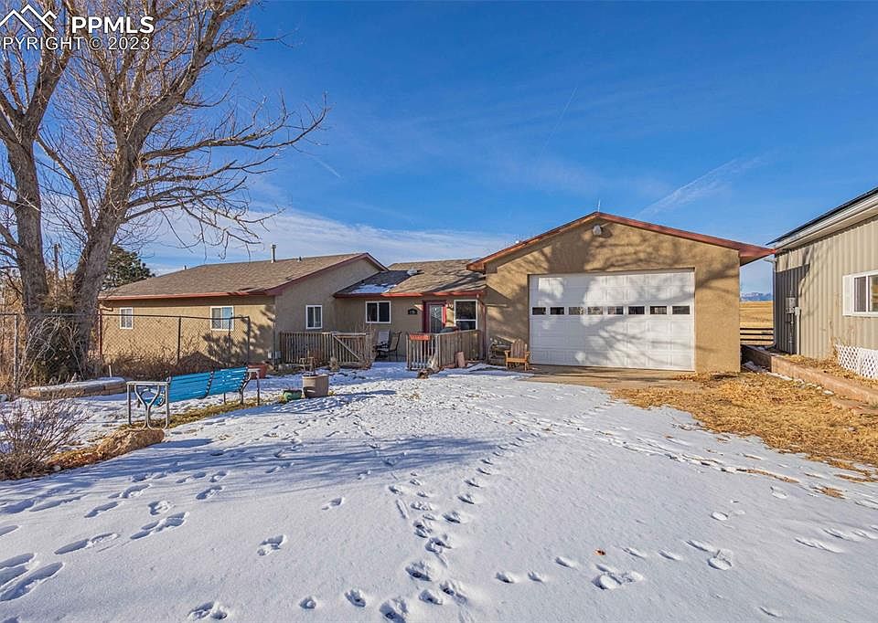 Welcome to your dream 5-acre escape in Colorado! This property boasts a spacious 3-bed, 2-bath, 2,298 sqft home with stainless steel appliances, fresh paint, and charming details like a stunning rock wall and a freestanding fireplace. Park your vehicles in the 2-car garage or utilize the detached oversized 2-car garage/shop for all your projects and storage needs. Explore the outdoors with two sheds, a small stable, a pond for tranquility, and a garden bed for your green thumb. Beyond the property, convenience is key – it's close to I-24 and Woodmen Road, providing easy access to multiple shopping centers. Plus, envision the possibility of horses, goats, and chickens adding to the rural charm of your new haven. This is more than a home; it's a Colorado sanctuary waiting for you to make it your own!