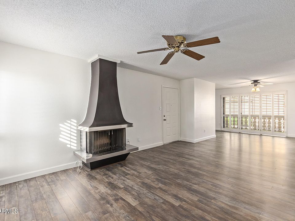 Fantastic location for this 2 bedroom 2 bath condo near Old Town, Scottsdale Fashon Square, the Waterfront, trails, the 11 mile-long greenbelt, the 101 and so much more. This is an upstairs unit that boasts of newer luxury plank vinyl flooring, newer gas range, all interior walls and ceilings have recently been painted Spacious open floorplan with cozy fireplace in the living room and beautiful plantation shutters on the dining and master sliders. Spacious master with a walk in closet and access to one of the two balconies. The second bedroom has a murphy bed. Community Pool & Spa. Pet friendly community. 30+ day rentals are OK with HOA. Note that the Electricity, Gas, Water, Sewer & Trash ARE INLCUDED IN THE HOA FEE!!!