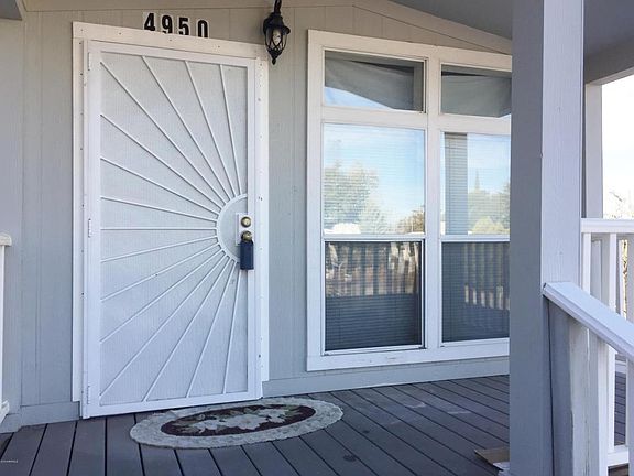 Nice panoramic mountain and redrock views, very well kept and gently lived in 2006 manufactured home, open and modern floor plan, 3 bedroom, 1.75 bath, separate laundry room, home is all electric, includes fridge, washer and dryer, central heat and a/c, nice breakfast bar, dining area has built-in buffet, cathedral ceilings, covered trek front deck, FHA/VA Required tie-downs have been installed, security screen door, open rear deck, extra large concrete parking area, storage shed, okay to park RV, nice home.