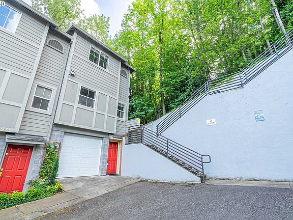 Beautiful, rare end unit townhome in the heart of the city. Minutes from Downtown and OHSU. Enjoy the park like setting with nothing but trees on one side. Two bedrooms upstairs feature vaulted ceilings and a Jack-and-Jill bathroom. Third bedroom downstairs behind the oversized garage is perfect for guests or working from home. Low and established $50 HOA and no rental cap. Don't miss the patio and backyard + firepit! Check out the 3D tour and walkthrough video for the full effect!