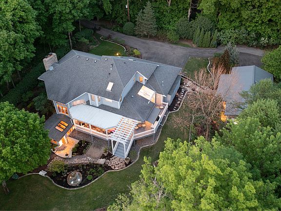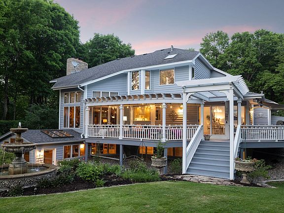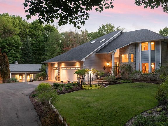 Welcome to this rare mini estate in the heart of Greenwood. Surrounded by mature trees and stunning award-winning landscaping, this custom home offers a blend of sophistication, privacy, and functionality. Some of the home highlights include: heated Travertine flooring with five zones, bamboo hardwood floors, solid birch millwork, soaring 18-foot ceilings, two statement wood-burning fireplaces, Carrera Marble counters, new carpet, and fresh paint. The lower level walkout features a light-filled spa room, a full bar, a custom climate-controlled wine cellar holding up to 630 bottles, and a beautifully finished entertaining space. Lovely outdoor spaces include a spacious 700 square-foot covered deck with a built-in grill station, an inviting front porch, and a custom fire pit. Stealing the spotlight is the remarkable approximately 1,000-square-foot outbuilding—fully insulated and equipped with hot and cold water, plus dedicated 150-amp electrical service. Perfect for the car enthusiast in need of a four-car garage, or envisioning a workshop, studio, gym; this versatile space offers endless possibilites. Walking distance to downtown Excelsior, Greenwood’s municipal docks, and easy access to the LRT trail. Located within top-rated Minnetonka School District. Enjoy the Lake Minnetonka lifestyle!