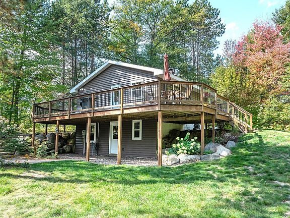 "Pride in Ownership" is what you will find when you visit this well maintained country home on a nicely wooded 4.77 acre lot.The main floor consists of 3 bedrooms, 1 bath, living room, kitchen and dining area. The walkout lower level consists of a large workshop area, laundry and a partially finished family room. There is an detached 2 car garage with extra storage. Other amenities include a large wrap around deck, apple and pear trees, fenced raised bed garden area, wood furnace, bonfire area and a small food plot. See attached list of updates and improvements