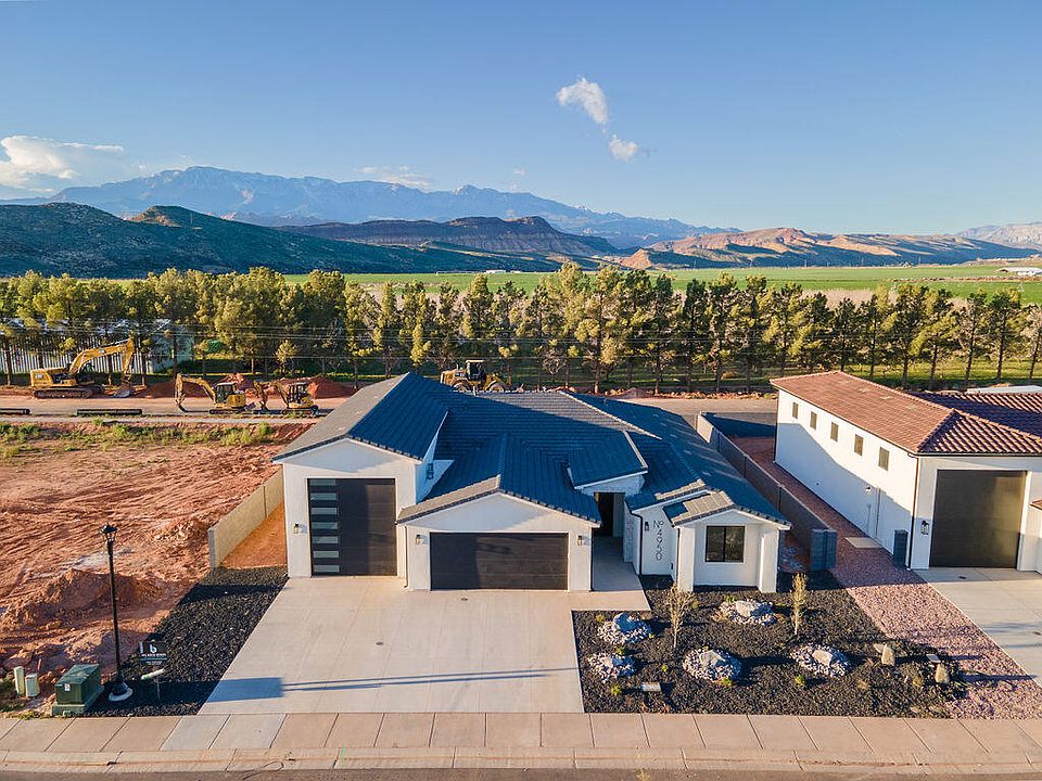 This brand new beautiful custom home has no neighbor behind, an awesome view, and a massive garage for all your toys. It features a 52' deep RV garage with a 14' tall door and a 2-car bay that is 24' deep, big enough for any 4-door pickup. The 4th bedroom (2nd primary suite) has a door to the exterior at the back of the house which could be utilized as a casita, a pool bathroom for your future pool, or for residential hosting (think nightly rental). You will love the coffered, tray, and dropped ceilings that add depth and dimension. Full of upgrades, just wait until you see the shower in the primary suite. Tucked away on a quiet street in Oak Haven, a new subdivision near Sand Hollow, it's just down the road from the reservoir and sand dunes. Ask about the low utility cost of Dixie Power.