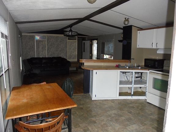 This 2 Bedroom 1 Bath Mobile Home is ready for a new owner! Bedrooms are on each end of the home with very large closet space in each. The Living Room & Kitchen area open up to each other. Nice Vaulted ceilings with faux beams are in this area along with a Breakfast Bar & Built in Shelves. The home has a Refrigerator,Stove,Washer & Dryer. The Bathroom has a nice spacious Garden Tub. The covered front porch has steps for you & a ramp for your dogs to walk down.There is a nice storage Building that comes with the home. Chain link fencing surrounds the yard. The home can stay in the Park or be moved after it is paid for. Lot rent is 305/month. Springfield schools pick up & drop off at the Park. This a cash price only. Owner financing will be 15,900.