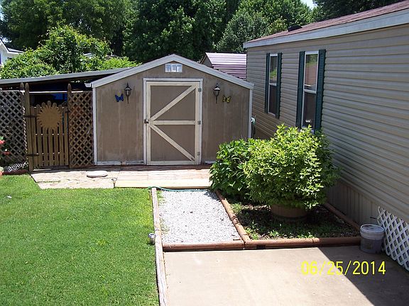 Owner financing available with required down payment. MUST SEE TO APPRECIATE! Well maintained, nicely landscaped and fenced 1996 Fortress 16 X 80 with 6 inch walls and sheetrock, painted and textured cathedral ceilings. New siding, roof, deck cover and carport in 2011. Oak cabinets and ceramic tile in kitchen and bathrooms. Floors have no carpet, all vinyl tiled in 2014 and newly painted throughout in 2014. Included items are dishwasher, washer, dryer, water softener, water filter system and de-chlorinator. Double Marble sinks and counter in Master bathroom. Also included are double carport with one side enclosed, 20 X 15 covered deck with removable privacy fabric, with 8 x 8 covered deck, 10 X 15 storage building, and 10 X 10 shed, all yards fenced, one with privacy and one with chain link. Lot rent is $305 per month. Call 417-840-2266 or 605-291-9223 for appointment to see this exceptional home. $25000.00 Possible owner financing with required down payment.