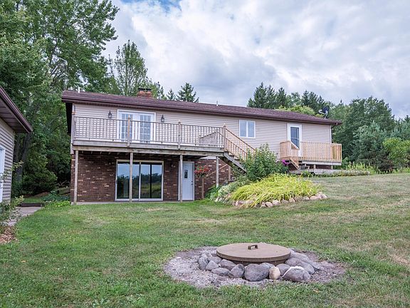 Extremely well maintained 5 bedroom ranch on a quiet road only about a mile from Clifford lake. The home is situated on 4 acres in a parklike setting overlooking a large private pond entirely on the property. Full finished walkout basement has a large family room with wood stove, den, full kitchen, two bedrooms, full bath and utilities. Main level features another full kitchen with custom cabinets, living room with a wall of windows, master and 2 additional bedrooms and a full bath. Large deck off the main level with panoramic view of the countryside, small private deck off the master bedroom. 32x40 3 stall pole barn w/10' walls and electric. Discover tranquil living in this beautiful home in your own personal park.