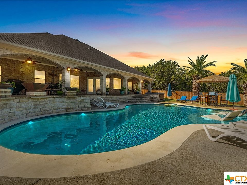 Every 4th of July there’s a private show across the street that puts all city pyrotechnics to shame. You can watch it from your own yard. Westcliff boat ramp is less than 5 minutes away. Franks Marina is 10 minutes away. The owner created a private, serene oasis in the backyard. This pool was once the largest in Bell County (private pools) and has recently undergone a huge transformation. A cocktail table with seats, a larger and more stylish tanning ledge, and brand new Gunite. The fire bowls are propane fueled and add a fun and dramatic flair to the entertainment area. You will spend most of your home time outside when you move in. However, the interior of the home is just as entertaining and inviting as the backyard. A three-bedroom split floor plan with 2 full baths and separate dining and living spaces have fresh paint throughout. Travertine tile and wood floors are timeless detail. This property is just shy of 2400 sq ft. The kitchen features a cooktop on the island with downdraft, beautiful cabinetry with soffit space for styling. A large countertop to entertain guests all while viewing your perfect backyard oasis through the numerous windows. The three-car garage is side load and offers plenty of storage opportunities. A new roof was installed in Spring 2022. Make an appointment to view it today!