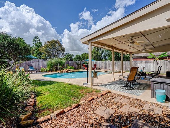 MOTIVATED SELLER. BRING OFFER. PRICE REDUCED. Come tour this wonderful home located in the neighborhood of Timber Forest. Backyard has gorgeous in ground salt water pool/spa, fire pit and covered patio/ceiling fans to enjoy entertaining and relaxing. Updated kitchen-quartz counter tops, quiet close custom cabinets/drawers throughout. Built in wine refrigerator. Cozy den with gas log fireplace and eat in dining. Spacious formal living/dining perfect for holiday dinners and entertaining. Soaring ceilings with lots of natural light. Inside large Laundry Room off of two car garage. All bedrooms upstairs. LARGE Master bed/ensuite bath, double vanity, custom shower. 3 extra bedrooms (one being used as a craft room), additional full bath upstairs. Bonus room upstairs. Porcelain tile flooring down stairs, carpet up. Gutters, sprinkler system, alarm system. This home has everything you need and more. Bush Airport nearby, great schools, dining and more. Lots of storage and upgrades.