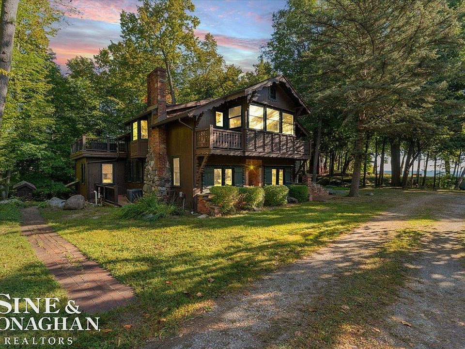 Welcome to a once-in-a-lifetime opportunity to own a breathtaking storybook estate with 619 feet of pristine lakefront—a property rich in history, character, and natural beauty. Including 4951 N Lakeshore and 4931 N Lakeshore, this estate spans two separate parcels and includes two exquisitely preserved historic homes, offering a total of 8 bedrooms, 6 full bathrooms, and 3 half baths across 4,350 square feet of living space. Whether you're seeking a multi-generational haven, a private guest compound, or a place to entertain in unforgettable style, this estate delivers versatility and charm in equal measure. Nestled on a gently sloping hillside and surrounded by wooded trails, natural creeks, and scenic ravines, the property feels worlds away—yet it’s fully equipped for both relaxation and recreation. Enjoy summer days on your own sandy beach, unwind at the charming beach house—complete with a full bathroom and cozy living space—or stroll the cement pier that extends gracefully into crystal-clear waters. For those who love to entertain, the estate features a tennis court, expansive pavilion, and several outdoor fireplaces perfect for twilight gatherings. Inside, you'll find five fireplaces throughout the two homes, adding warmth, ambiance, and timeless character to the interiors. And for a truly magical touch, a whimsical treehouse—complete with bunk beds, electricity, and running water—offers an unforgettable escape for both kids and the young at heart. A collection of multiple outbuildings adds even more opportunity—ideal for storing boats and equipment, or transforming into creative studios, workshops, or additional guest space. This is more than a home; it’s a legacy estate where timeless architecture meets unspoiled nature. Whether you’re dreaming of a serene getaway, a storybook setting for unforgettable family moments, or a one-of-a-kind investment in lifestyle and land—this extraordinary property must be experienced to be believed. Don’t miss your chance to own a piece of living history in one of the most picturesque settings imaginable. Property is under audio and video surveillance at all times.