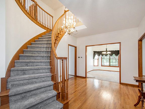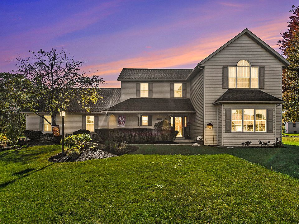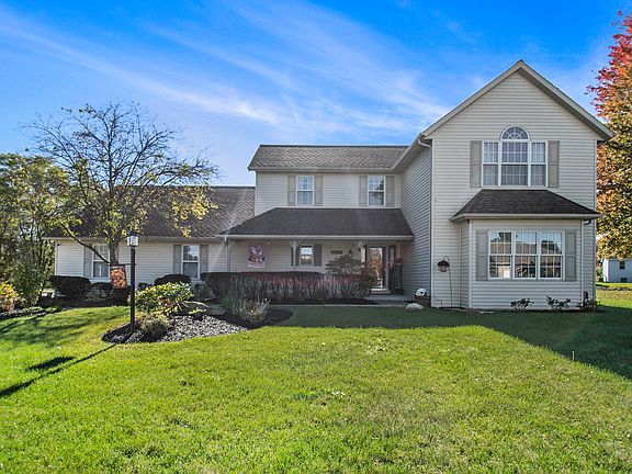 GRAND ON THE CUL DE SAC! THIS IS IT! Sitting nestled back on almost 3/4's of an acre lot in the desirable Hunters Run Neighborhood this over 3500 finished sq ft home doesn't disappoint. A stunning two-floor foyer featuring a beautiful curved stairway to the upper level will greet you upon arrival. The kitchen has newer appliances and great window views of the back yard from the sink area. So many entertaining spaces: there is a great room on the front of the home, a formal dining room, and an additional dining space off the kitchen which flows directly into another large living room. This space connects you to the open backyard via sliding doors. You'll also find a 1/2 bath and finished laundry room conveniently located on the main floor. The real show stopper is the upper level PRIMARY BEDROOM! This 20x18 retreat with the perfect amount of natural lighting, cathedral ceilings, en-suite bathroom, and a 10x10 walk-in closet is dreamy! Two additional larger bedrooms and full bath are also located on the upper level. As if that wasn't enough... a finished basement for added fun! A huge rec room, an additional office or bedroom, and another bonus/billiard area that is plumbed for a wet bar. The basement also houses a fourth bathroom with a walk in shower and multiple unfinished storage areas. Toys Welcome! The over-sized attached garage has a jumbo door (tall clearance) on one side, perfect for your boat, RV, and more! The extended concrete drive allows for extra parking. Mature landscaping, fire pit area, deck, gardens, irrigation system, all new carpeting, radon mitigation system, peaceful back-yard, covered front porch, and my favorite trait... CLEAN are the extras here. Come take a look and call this HOME!