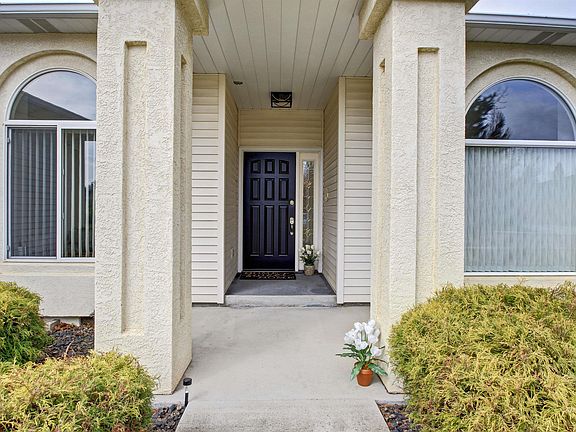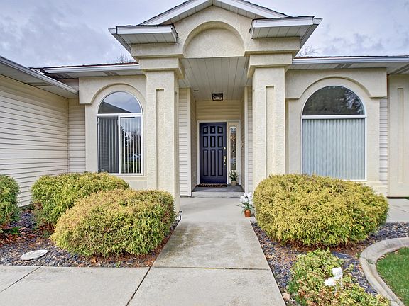 One owner custom built home w/so many thoughtful touches. Tile entry leads to office/4th bedrm w/walk-in closet, separate classic formal sitting & dining w/coffered ceiling & beautiful light throughout. Crisp white kitchen, hardwood floors, TONS of cabinetry/workspace (note the drop down section for easy pass thru & extra counterspace) pull out shelves, hydraulic shelf for heavy mixer/juicer & utility/bread box. GreatRm find plant shelves & cozy gas fireplace (recently serviced & behind pic "ready" for wood stove!) & view to covered patio. Master is HUGE w/sitting area & "secret" door behind mirror to flex/office/exercise rm. Nice sized walk-in closet w/built-ins, jetted tub & dual vanities. All 3 bathrms w/newly tiled floors. 3 of 4 bedrms w/walk-in closets & ceiling fans. LaundryRm w/sink leads to insulated garage w/cabinets & workbench. Furnace 7yrs new. Some lighting & faucets new. Gazebo out back w/lighted posts, LG deck, shed & Sunburst Locust for shade all summer! Irrigation inc in HOA-Steps from park!
