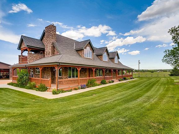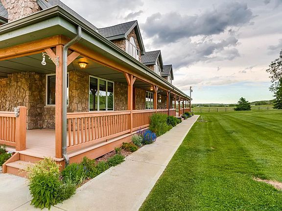 Amazing multi-generational estate sitting on 8.76 acres. Over 6300 finished square feet. This home was designed to house parents or in-laws. It features 2 full kitchens, 2 master suites, 2 laundry rooms and an additional 2 beds and 3 baths. The full finished basement features additional bedrooms, a large great room and a work shop. Both kitchens have slab granite countertops and custom cabinets. The garage is a mechanic's dream with car lift and heat. You will love this lot. Plum Creek flows right through the property. This is a rare location where you can shoot guns and hunt on the property. Zoned for horses with a 4 stall barn. Gorgeous wrap around deck and 2 sun rooms.