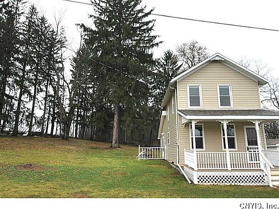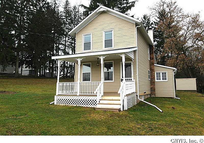 This charming home in the Skaneateles School District has been remodeled from top to bottom! Step onto the classic front porch and enjoy the golf course view. Inside is freshly painted throughout and features a large eat-in kitchen with abundant cabinetry and convenient laundry area. The living room, formal dining room and bedroom/den have new carpeting. Upstairs are 2 more bedrooms (one with a cedar closet) with new carpeting. There is a nice deck just off the kitchen perfect for your grill! New roof, siding, insulation, public water....the list goes on...just move in and enjoy!