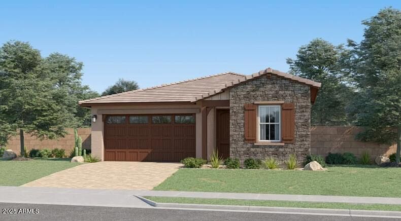 Ask about special financing with preferred lender. Photos are of a model home, not the actual home. This home is located in Ventana Ranch, a brand-new, amenity-rich, master-planned community. A generous open living space serves as the heart of this single-level home, offering seamless transition between the Great Room, kitchen and dining room, while sliding glass doors lead to a covered patio for indoor-outdoor living. You will find plenty of room for your family with three secondary bedrooms and a stunning owner's suite complete with a spa-like bathroom. Featuring maple latte stained cabinets and quartz countertops. All stainless steel kitchen appliances pictured are included. A public report is available on the ADRE's website.