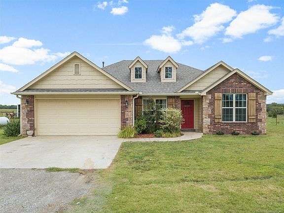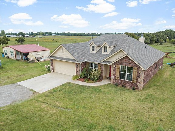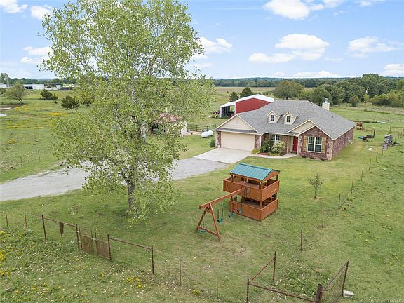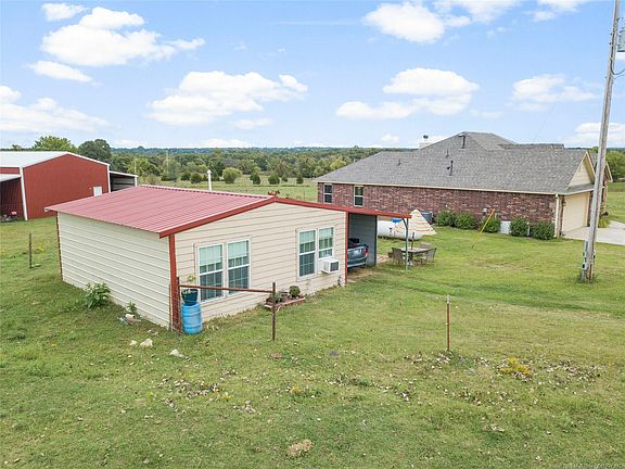 Beautiful home with 4 beds offers a quiet country living on 16+ acres. Open concept, split floor plan. Large primary bedroom with spacious bathroom & soaking tub. 4th bed c/b be office, screened back porch, Guest house 1/1 with enc. parking. 30X50 barn w 2 lean-to's, feed & tack room. Storm shelter. Don't miss this chance to get out of the city and in to the quiet life of country living.