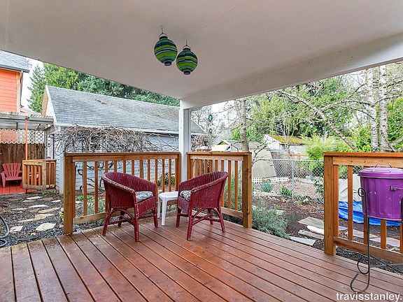 2BR 2 BA home with lovely fenced yard, mature fruit trees (cherries, plum, apple, grapes) close in, gardening shed. Easy walking distance to heart of Woodstock, New Seasons, Trader Joe's, bus to downtown. Zoned for Lewis Elementary. 780 sq feet on main plus finished basement with lots of storage. Wood floors, large windows. Sunny deck outside of 1 bedroom with double doors onto deck. The property has a separate, private ADU with a private entrance owner uses for home office. Utilities Included in Rent: Trash/recycling and monthly lawn/yard care Utilities Paid by Tenants: Water, electric, gas Washer/dryer, all kitchen appliances included. We require: 1st month, last month and $1000 security deposit Excellent credit score 700+ 1/3 rent/income Excellent rental history with references from previous landlord Renters insurance required prior to move in and throughout tenancy 40$ nonrefundable fee for online background and credit check through cozy.com No smoking of any kind on premises No pets Owner pays trash and garden maintenance