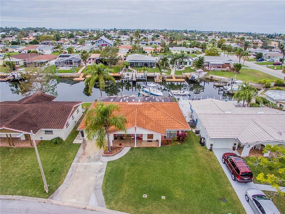Spacious Gulf Harbors waterfront home with 60 feet of seawall includes a private floating dock and a 10,000 lb boat lift. Direct deep water access to the Gulf of Mexico in just minutes! Home has 3 bedrooms, 2 baths, an inside laundry and a one car garage. Large windows throughout the house provide lots of natural light. Kitchen has large closet pantry, is open to living room/dining room and has pass through to family room. Master bedroom has updated en suite bath and walk in closet. 2nd bedroom also has walk in closet. Laundry is located off the bedroom at the back of the house and also provides walk in closet space. Windows at back of house overlook the huge, newly stained wood deck, floating dock (with power & water) and boat lift. Tile roof was replaced in 2003, AC in 2006 and electric panel in 2013. Gulf Harbors community offers a PRIVATE BEACH on the Gulf of Mexico with picnic tables, grills, showers, restrooms, 2 boat ramps and yacht club. Fishing, diving, sailing and watersports can all be part of your Florida dream and right outside your back door.