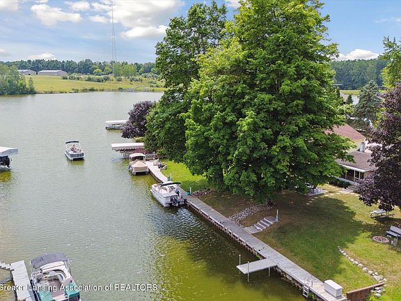 Welcome to 4951 Shore Lane Perrinton MI- This 3 bed/1 bath home away from home is on Private, All-Sports Rainbow Lake has 80 ft of waterfront. This lake cottage has the rustic charm of a true up north cabin but with upgrades in the kitchen and bath areas. There is a large three seasons room that looks out to the water. Outside there is a firepit and a nice patio area with a grill (gas line runs to it). The dock is perfect for fishing off of. Plenty of space to play under the mature trees when you are not out enjoying the water, fishing, skiing or taking a sunset cruise on the long and scenic lake. This home has been used as a summer cottage only. Originally a Franklin stove adorned the home and the chimney still remains should you want to add any type of wood or corn burner stove. Alternatively, a mini split or baseboard heat could be added to the home for more year-around use. Connected to the home with an outside entrance is a utility area with washer and dryer. This home has natural gas, high speed internet available and municipal sewer. A sandy beach less than 200 ft away and it is a short 1/2 mile bike ride to the basketball court, pickle board courts and playground. HOA fees are low at $175 a year. This property is just 45 min north of Lansing, 1.15 hrs from Grand Rapids and 2 hours from Detroit for an easy commute. See you at the lake!