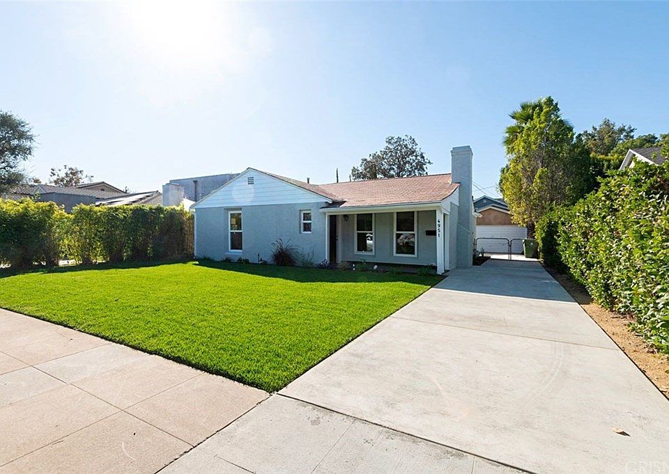 This Remodeled 4 bedroom, 3 full bath home for lease personifies sophisticated taste and the California lifestyle, located in a highly desired Sherman Oaks neighborhood. Beautiful built-in cabinets are featured as you enter the foyer and hardwood floors throughout for a polished appeal. Updated kitchen has granite countertops, breakfast bar, new appliances and washer and dryer. Waterlines and water heater have also been upgraded. Beautiful park like backyard includes a nice size patio and a permitted bonus room/office/art space over 600 sq. ft. that has wood floors and paneled sliding glass doors. Plus, fabulous high ceilings with natural wood beams, ceiling fans, recessed lighting and 6 skylights with retractable covers.