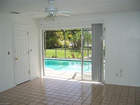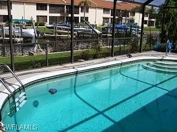 This is a 2 bedroom with 2 baths. Better yet, it has a private pool and is on a Gulf Access canal that is only minutes to the river. Davit and boat storage included if needed (can not fit sailboats). There is also a shared dock. Full size washer and dryer inside the unit . Tile in every room. Very open floor plan that opens up into a large lanai surrounding a pool with large sliding doors overlooking the canal. Close to plenty of shopping and restaurants. Very close the Cape Coral bridge for quick access to Ft Myers. This is worth taking a look. Very unique. Pool care and lawn care included. Large yard for pets, with approval.