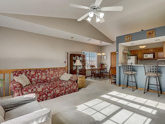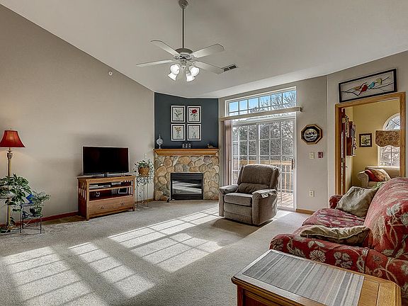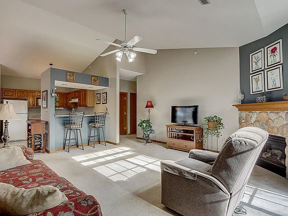 Bright & modern upper condo has relaxing views & is close to all things that Greenfield has to offer with easy freeway access moments away. A bright living area features vaulted ceilings, high efficiency fireplace & patio doors that open to your relaxing, elevated patio. Kitchen features granite countertops, new sink, plenty of cabinets, is open to dining area & shares a raised counter with the living room. Master suite has a private bathrm, vaulted ceilings & walk-in closet. 2nd bdrm has good size & ample closet space. 2nd bathrm features a walk-in shower. In unit laundry room has storage & convenience. Unit features a flexible & bright sitting room that could be your office or spare room. Large garage, new furnace & central air, private entry & plenty of closets make this condo stand out