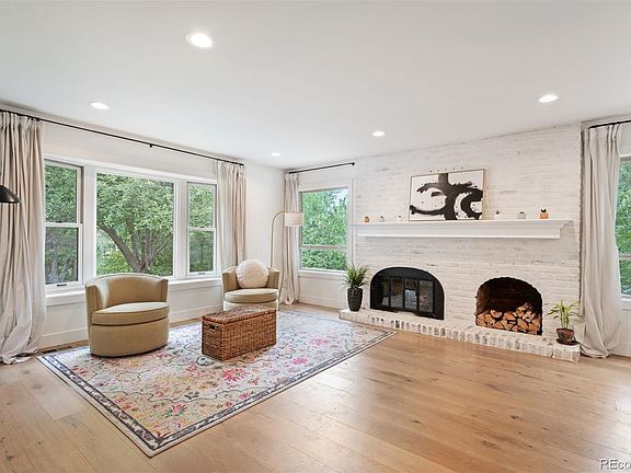 SPACIOUS, LIGHT FILLED LIVING ROOM is accented w/ Frame Molding, Arch Bookcases, Granite Mantled Gas Fireplace, Built in Bar, Ice Maker, Wine Frig & Window Seat. Large Dining Room easily hosts Table for 10+. Inviting Family Room hosts wood burning fireplace & Surrounded by Windows overlooking the Sprawling Back Yard while opening to Kitchen's Soapstone Bar. Kitchen includes Stainless Appliances, High End Dual Oven, 6 Burner Gas Stove w/ Skillet & Professional Grade Ventilation while being softened by Accents of White Washed Exposed Brick, A Board & Batten Vent Facade & Open Shelving. A Main Floor Office is tucked away for Privacy. Retro Vibed' Powder Room. Oversized Mudroom + Laundry Room w/ Customized Organization System.