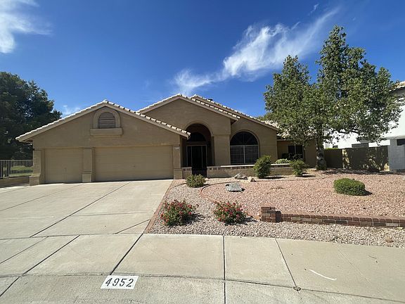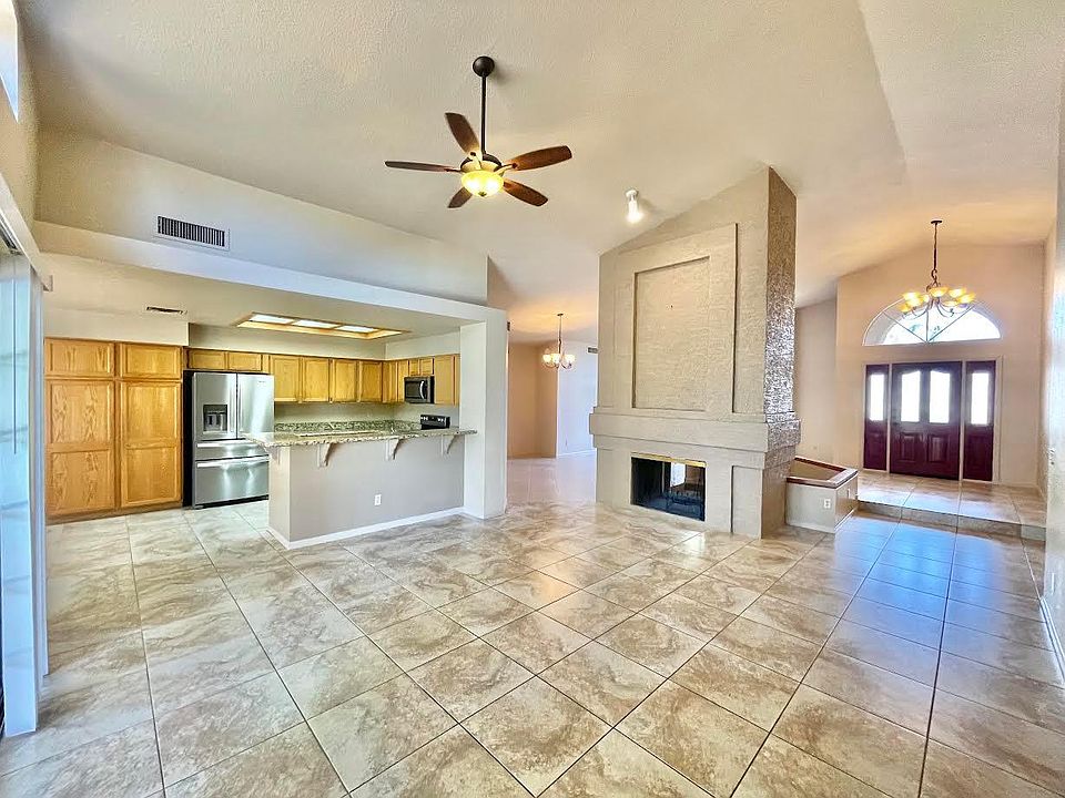 OPEN FLOOR-PLAN TILE THROUGHOUT - except BEDROOMS HOUSE-4 Bedroom 3car Garage with a fenced POOL & large Covered Patio (Pool & landscaping service included!) Both Living Room & Family Rooms!Great Back View! Corner lot with expansive greenbelt with walking paths wraps behind home! Living room has conversation pit with see-thru fireplace, eat-in kitchen open to Family Room, split bedroom floor plan. Master & family room have sliding door access to backyard and pool. Master suite has separate tub and shower, walk-in closet, patio door to covered patio in back. Near shopping, restaurants, etc. Rent includes Pool + Yard maintenance. 1 Year Lease Minimum and Longer Preferred No smoking.