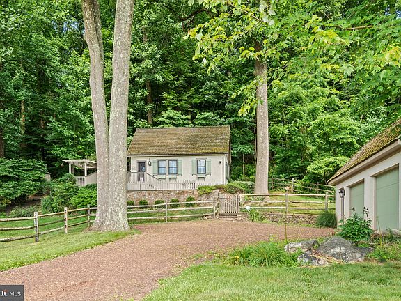 Welcome to this quintessential Story Book charming cottage in Bucks County. It's situated on a stunning 4 acres of picturesque land. The details are endless, cedar roof, round copper gutters, multi level blue stone patios and walk ways lined with the perfect picket fence. Mature trees and landscaping, luscious garden beds, touches of local Mercer tile sprinkled through out the property and home. The multi tiered deck canopied by a trellis of climbing roses, hosts several spots for your outdoor furniture to relax day and night. Stepping off to a small natural stone patio to enjoy a beautiful night around a outdoor masonry fireplace. The home features 2 bedrooms and a full bath that is adorned with local Mercer tile, on the main floor, where you'll also find hardwood floors through out and another large room with ample closet space on the second floor, fully carpeted and making a perfect guest room, office or playroom. The basement provides another generous storage area and laundry area, complete with sink. The stunning views of the hillsides and farmland surrounding the property provide a sense of peace and tranquility. Listen to the sounds of song birds while enjoying your morning, watching the sunrise from your perfect perch. Additionally this home includes a spacious two-car garage, providing storage space for vehicles and outdoor equipment. With it's unique charm and serene location, this property is sure to captivate potential buyers looking for a peaceful retreat in the countryside. Award winning Central Bucks School District and conveniently located within minutes of New Hope, Doylestown, Newtown and Peddlers Village.