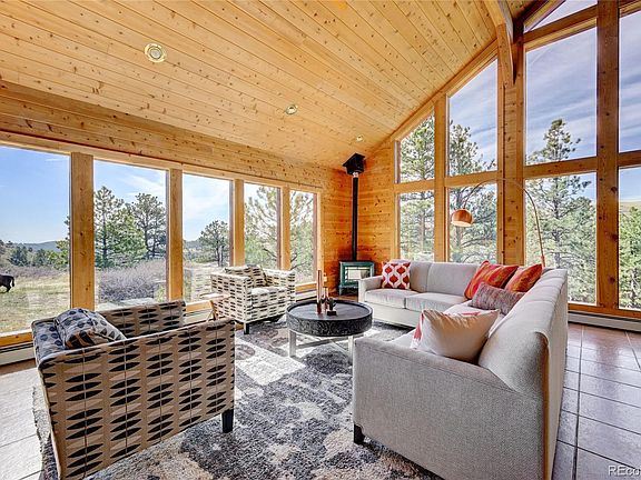 Wrap yourself in true Colorado living in this lovely mountain home. Perched on a flat ridge top at the end of the road and surrounded by a picturesque 40 acres with beautiful city and foothill views, you have found your ideal Colorado sanctuary. All this is just a short, scenic 15-minute commute to the heart of Golden. This solidly built home offers an open floor plan and true main level living. The great room room features floor to ceiling windows that bring the outside in, and sunshine is abundant. Step outside from the spacious kitchen and dining area with your cup of coffee and enjoy the tranquility of your sunrise view. Vaulted ceilings are found throughout the home, including the primary suite with private bath and walk-in closet. Additionally, there is an amazing “spa bathroom” with a waterfall shower, Jacuzzi tub and sauna. In addition to the three bedrooms, you have an office, loft, basement workshop with outside access, and plenty of storage. The paved flat driveway makes access easy, and you will love the oversized 3 car garage with a built-in workshop that also has a heated office/rec room area above with separate access. There is plenty of room for RV’s and other mountain toys. Additionally on the property you will find a shed, heated greenhouse with running water, and whole-house generator. Your 40 acres includes the home with 10 acres in addition to the adjacent separately deeded 30 acres with agricultural zoning. The property features aspens, rolling meadows, a seasonal stream, & abundant wildlife trails. You are only 13 minutes from the fabulous Staunton State Park and miles of trails, 10 minutes to other open space parks, and 15 min from shopping and downtown Golden. Please view both property websites for video, floor plan and panorama's of property. https://vimeo.com/711935657 and https://v1tours.com/listing/41338. Peace, space, tranquility and warm mountain charm awaits…welcome home!